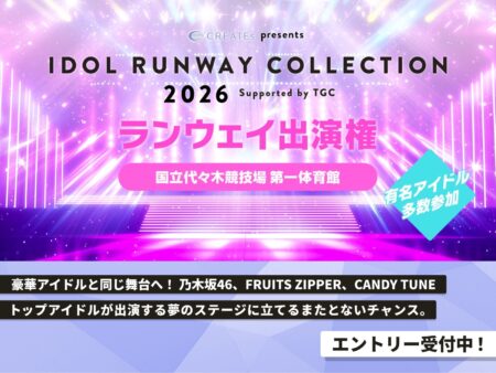 【エントリー受付中】『CREATEs presents IDOL RUNWAY COLLECTION 2026 Supported by TGC』ランウェイ出演権イベント2026/01/29 18:12