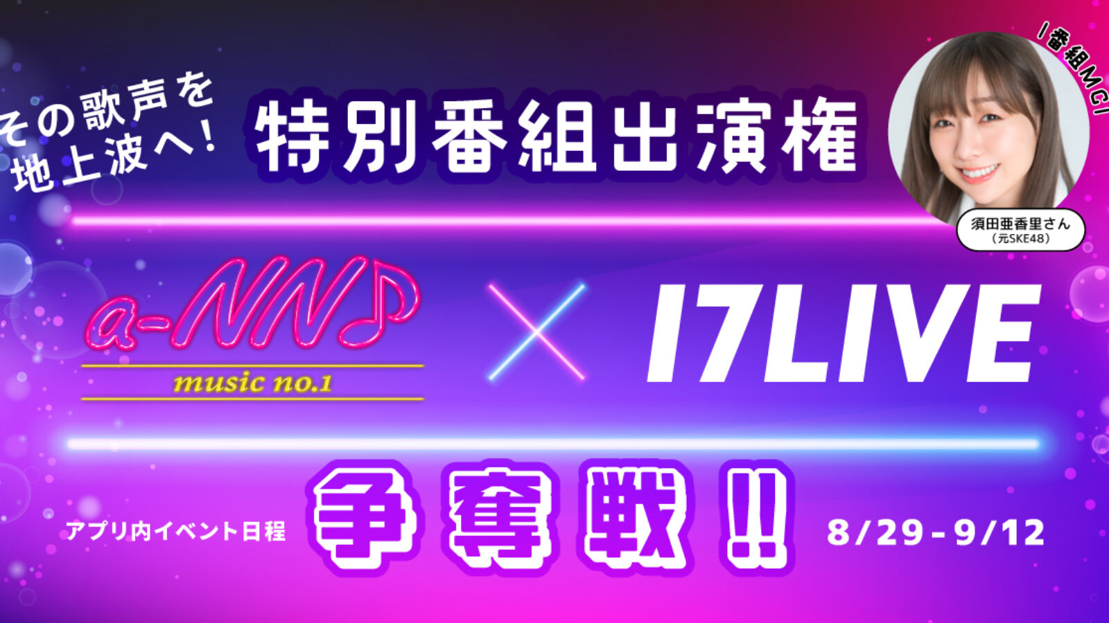元SKE48須田亜香里さんMCの地上波TV番組で歌唱出演のチャンス!『a-NN×17LIVE 特別番組出演権争奪戦!!』を8/29より開催決定!
