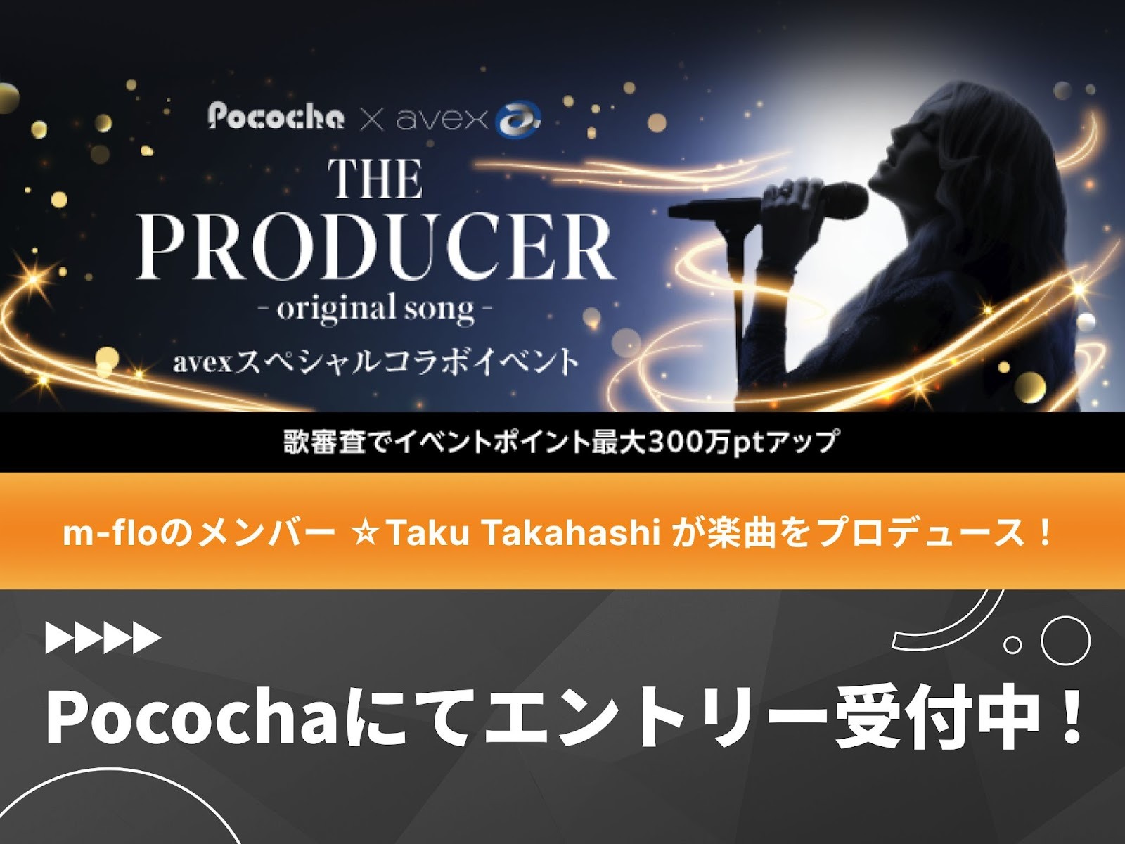 ライブコミュニケーションアプリ「Pococha(ポコチャ)」にて、エイベックス・ミュージック・クリエイティヴ株式会社とのコラボレーションによるアプリ内イベント「Pococha × avex THE PRODUCER – original song -」が、2025年11月11日(火)〜17日(月)に開催される。