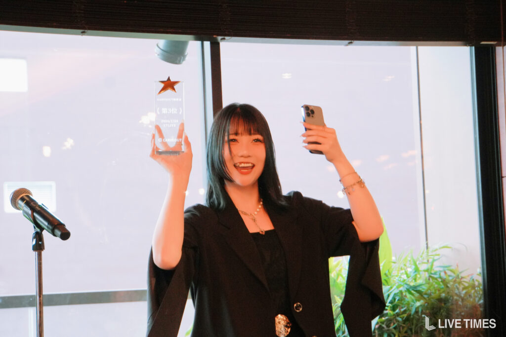 「ライブ配信を始めて5年目になります。CARVEOUTには9月に加入したばかりで、それまでは別のところで活動していました。配信を通じていろんな良さを伝えていきたいと思ってやってきた中で、昨日のオフ会でみんなが宣伝してくれて、本当にリスナーさんに感謝しています。トロフィーは大切に飾りたいと思います」