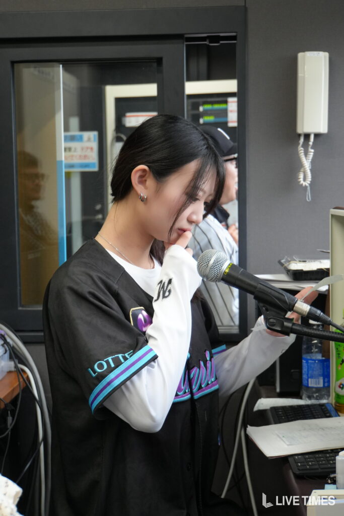 あくあ:私は野球が本当に好きで。その世界に入ることはなかったけど、TikTokだからこそできる野球のイベントがあると知った時は本当に運命的だなと感じました。ただまさかこのイベントも事務所がスポンサーに入っているとは知らなかったので、ここでしっかり伝えるべきだなと思い、ウグイス嬢やりたいですと声をかけました。