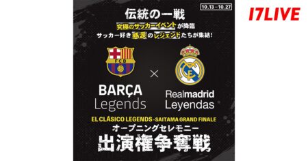 サッカー界のレジェンドが集う「エル・クラシコレジェンズ」オープニングセレモニー出演権をかけたライブ配信イベントが17LIVEで本日開始