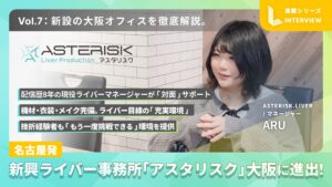 【連載Vol.7】名古屋発の新興ライバー事務所「アスタリスク」大阪に進出!新設の大阪オフィスを徹底解説。