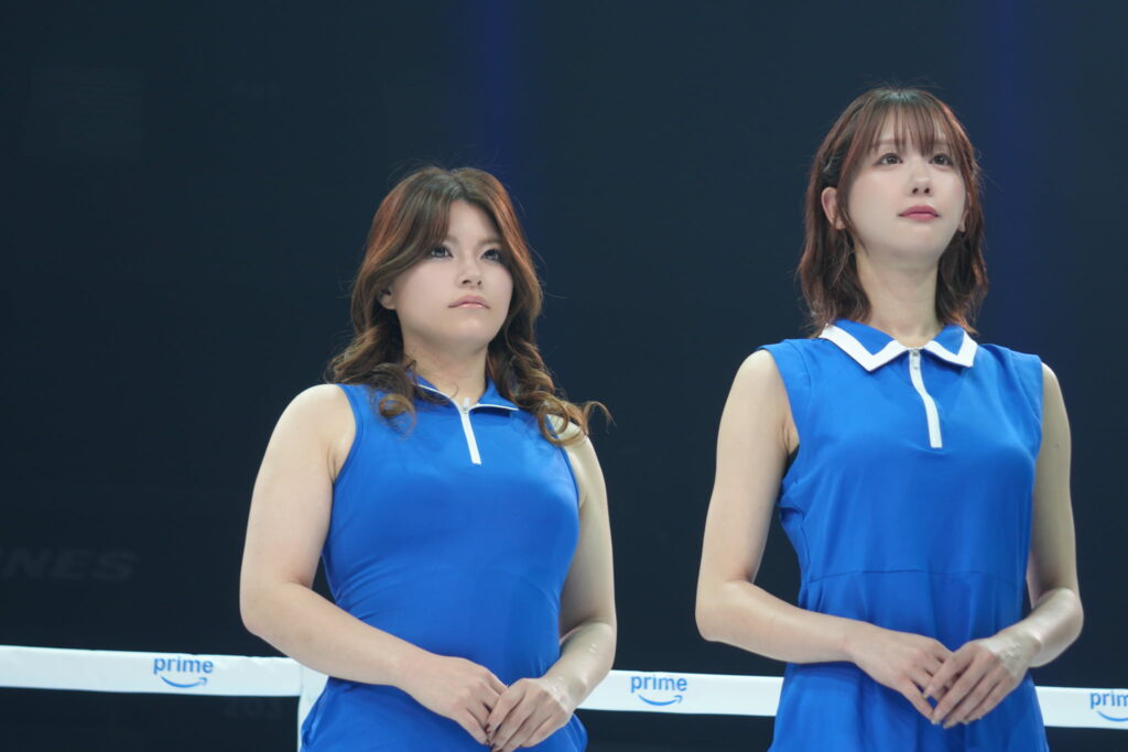 つばさ、あいりもラウンドガールとして出演し、注目の一戦を彩った。