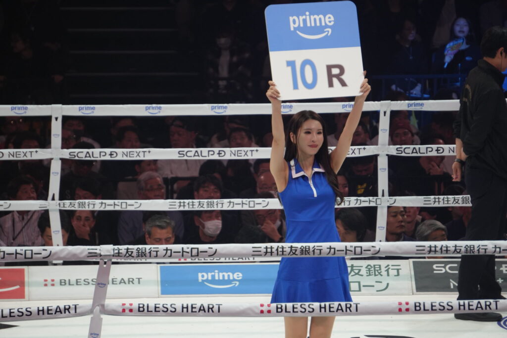 国内最大級のライブ配信アプリ「Pococha(ポコチャ)」で活躍する人気ライバー・えぬが11月24日、TOYOTA ARENA TOKYOで開催された『PRIME VIDEO BOXING 14』WBC世界バンタム級王座決定戦にラウンドガールとして出演した。イベントには同アプリでライバーとして活躍するつばさ、あいりのほか、タレントの森脇梨々夏、あらた唯を含む計5名がラウンドガールとして登場し、リングに華を添えた。