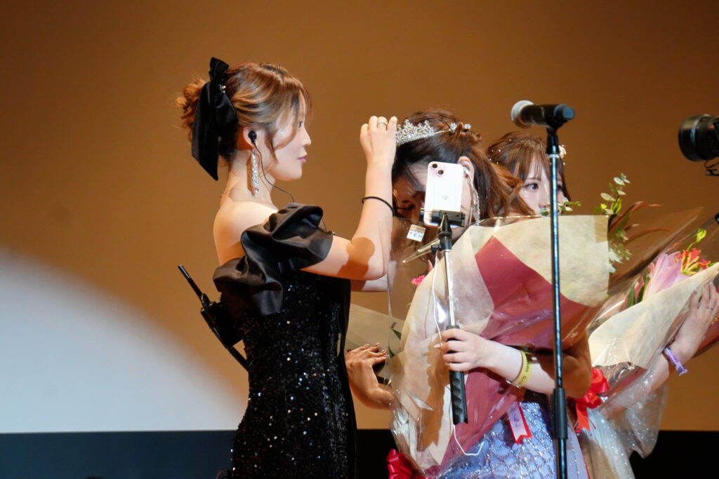 オンライン予選を勝ち抜いた4名(ちゃんりか、さな、まゆゆ、えらちゃん)による「四天王バトル」が開催された。ステージ上でリアルタイムに配信を行い、わずか5分間でどれだけの投げ銭(ギフティング)を集められるかを競うこのバトル。会場のスクリーンには各ライバーの配信画面が映し出され、関係者によると総額約2,000万円相当のギフトが集まる熱戦が繰り広げられた。この激戦を制し、見事1位に輝いたのはさな。短時間での圧倒的な実力を見せつけ、会場を大きく沸かせた。