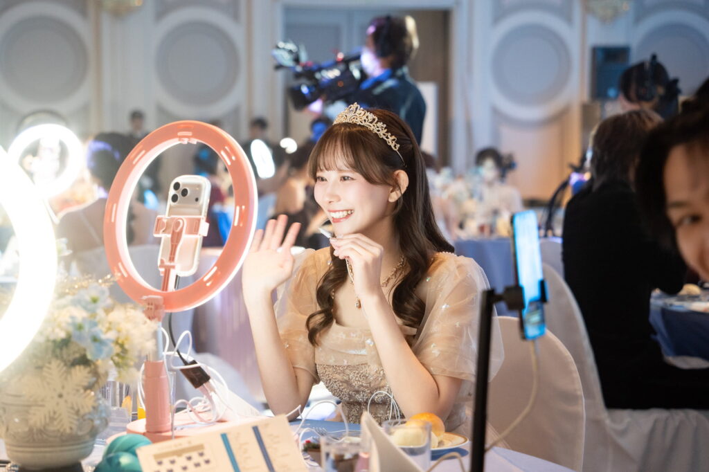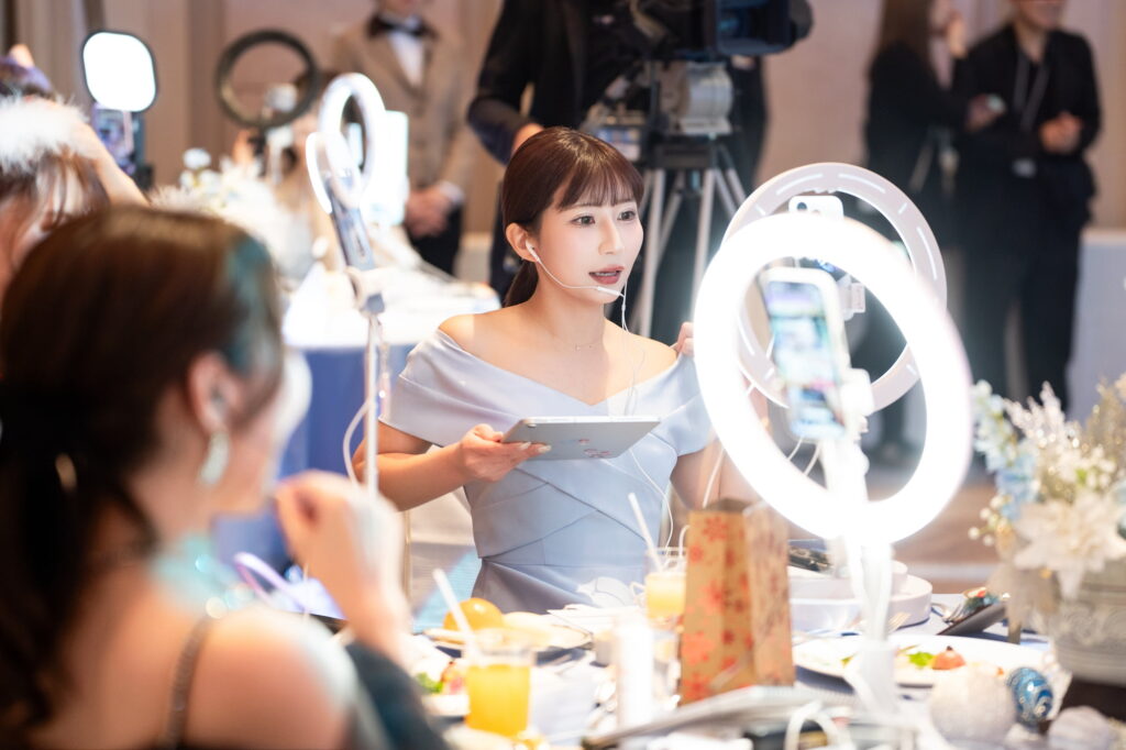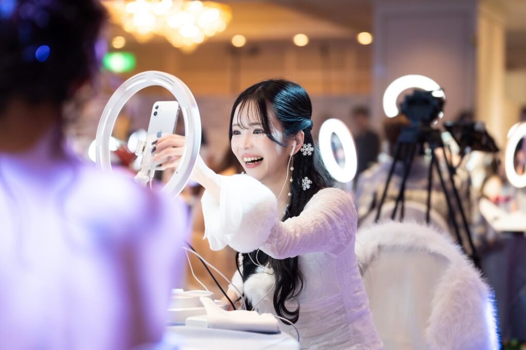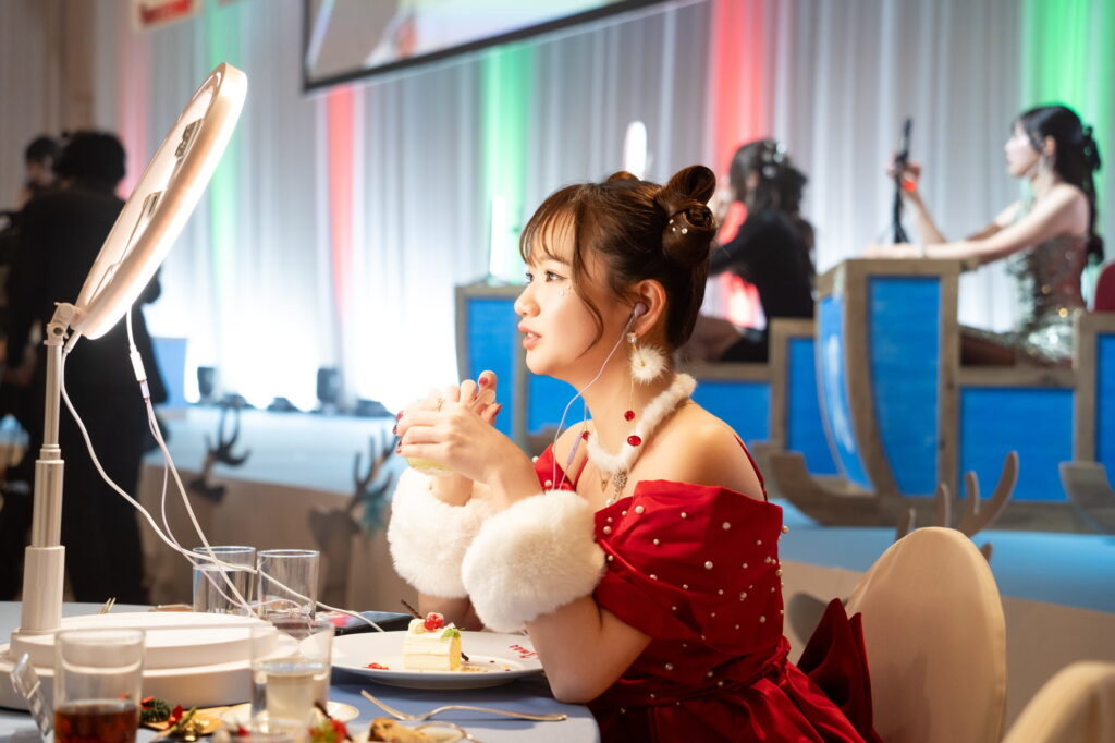 11月29日から12月19日までアプリ内で開催された出演権をかけたイベントを勝ち進んだ約50名が会場に登場。煌びやかなドレスやクリスマス仕様の衣装に身を包んだライバーたちが集結した。