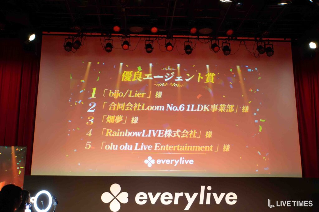 1位:bijo/Lier / 2位:合同会社Loom No.6 1LDK事業部 / 3位:畑夢 / 4位:Rainbow LIVE株式会社 / 5位:olu olu Live Entertainment