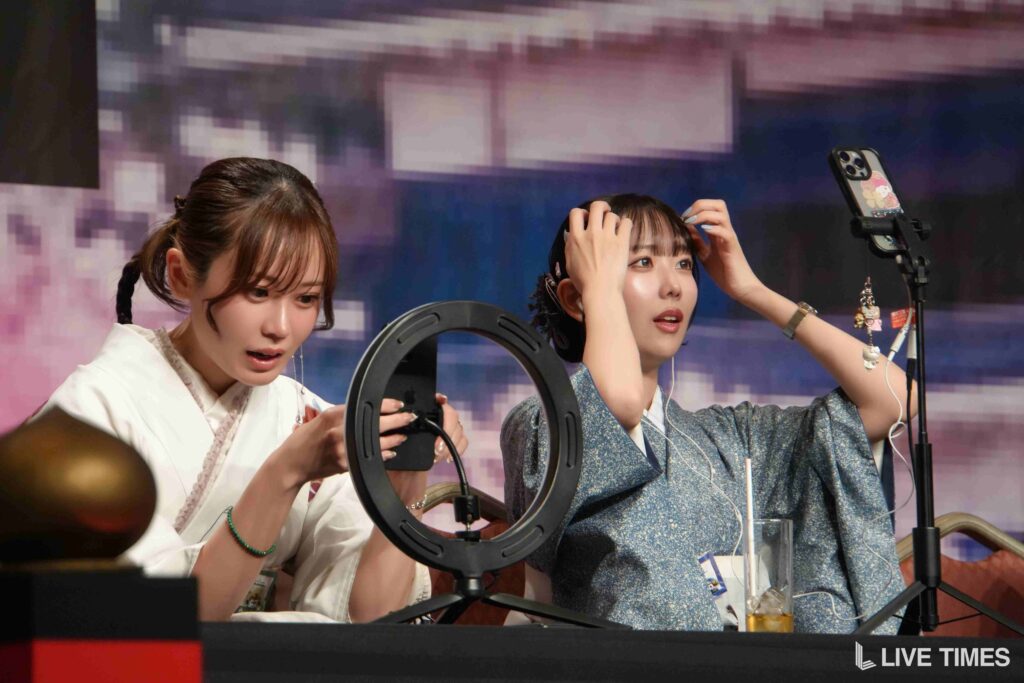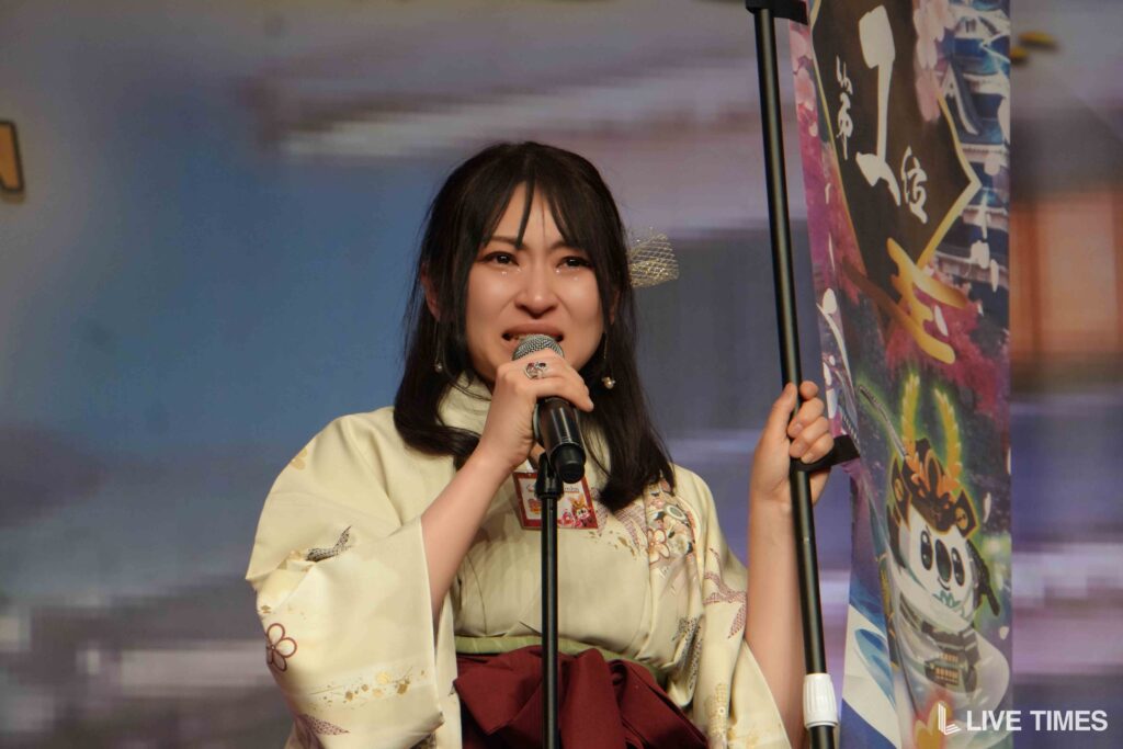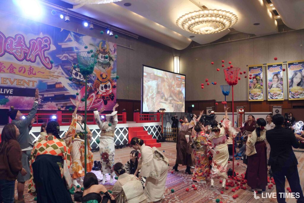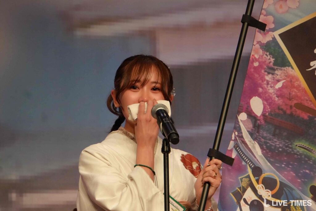 「戦国弓道対決」では、弓矢を放つのに苦戦するライバーたちの姿が会場の笑いを誘った。和装姿に弓矢がよく似合い、戦国時代のテーマにふさわしい一幕となった。