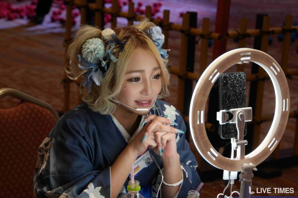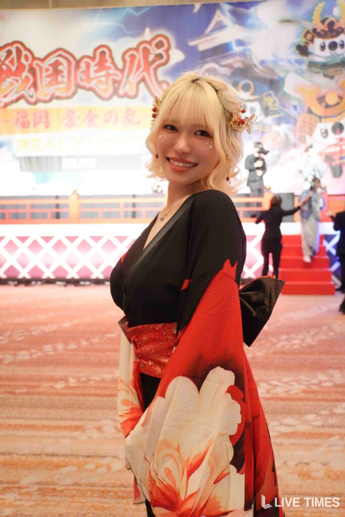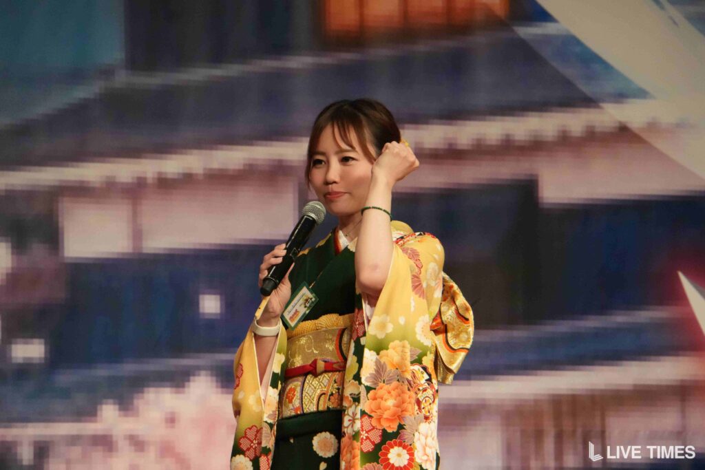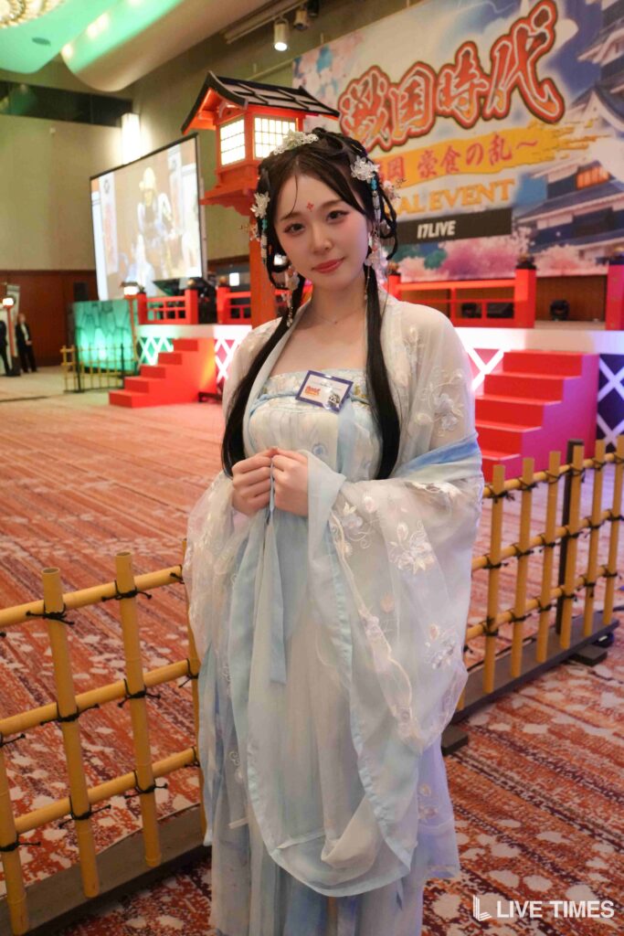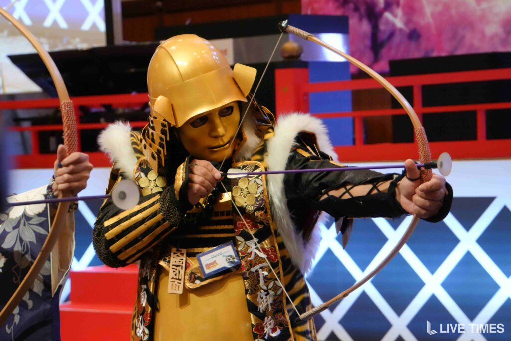 「戦国弓道対決」では、弓矢を放つのに苦戦するライバーたちの姿が会場の笑いを誘った。和装姿に弓矢がよく似合い、戦国時代のテーマにふさわしい一幕となった。