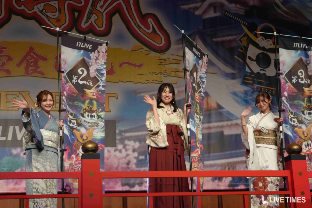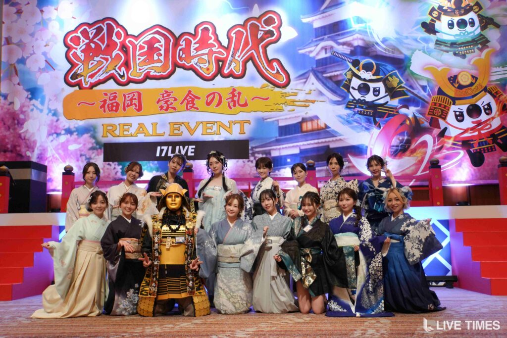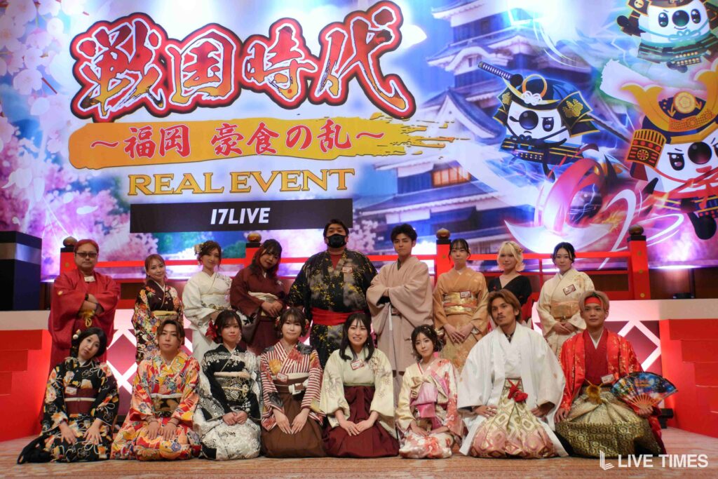 国内最大級のライブ配信アプリ「17LIVE(イチナナ)」が3月13日(金)、福岡市内の会場でリアルイベント「戦国時代〜福岡 豪食の乱〜」を開催。「紅ノ國」「蒼ノ國」「翠ノ國」の3チームに分かれた51名のライバーが福岡の地で激突し、チーム戦では蒼ノ國が勝利を収め、個人戦では「くつこMarimba」が前年の名古屋大会に続く2連覇で”天下人”に輝いた。
