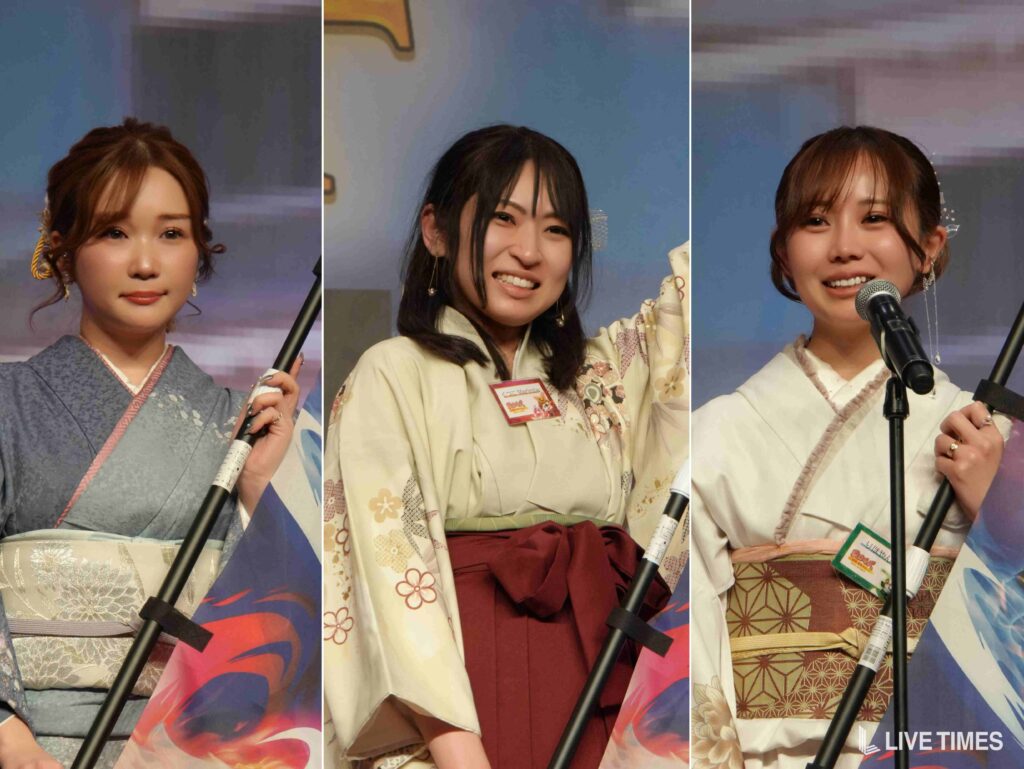 「戦国弓道対決」では、弓矢を放つのに苦戦するライバーたちの姿が会場の笑いを誘った。和装姿に弓矢がよく似合い、戦国時代のテーマにふさわしい一幕となった。