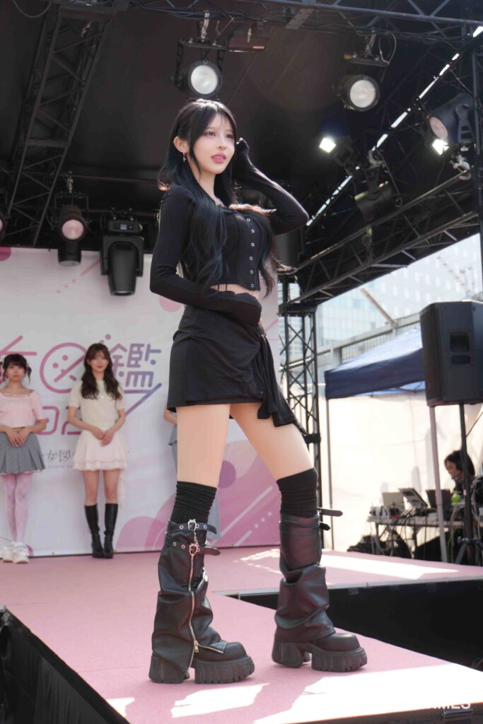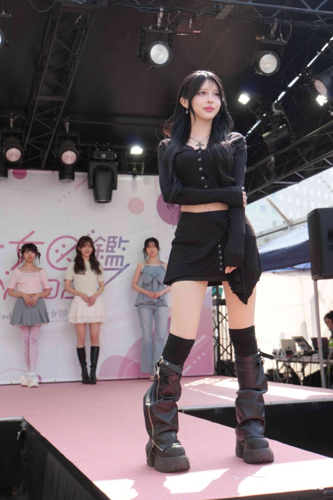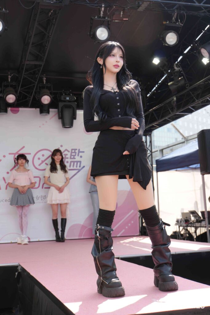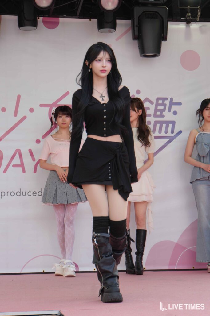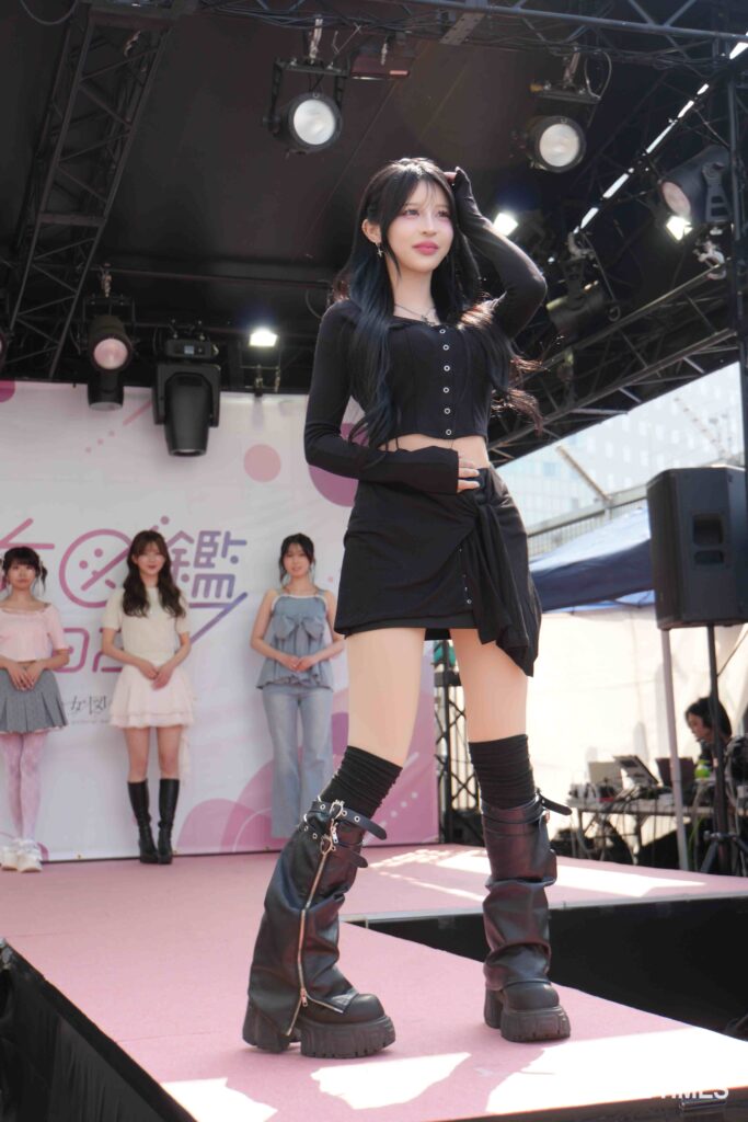 Ayanaは、黒を基調としたショートスカートのセットアップでK-FASHION STAGEのランウェイに登場。歩くたびに覗く美しいデコルテラインと、ショートスカートから伸びる脚線美で会場の視線を集め、トップではクールな表情から一転して笑顔を見せ観客を魅了した。
