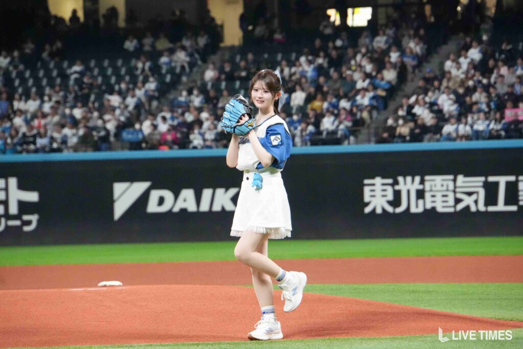 今回の始球式は、17LIVEで2月15日〜28日に開催されたイベント「目指せ始球式!『北海道日本ハムファイターズ×17LIVE』」で1位に輝いたことで出演権を獲得したもの。