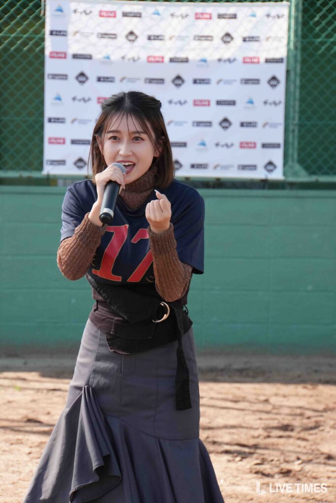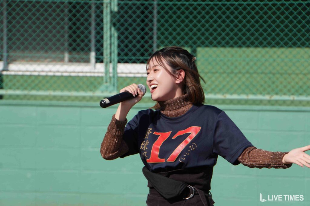 マイクを握った穂乃加は、伸びやかで力強い歌声を球場いっぱいに響かせた。披露された「野球って17(いいな)」は、17LIVEが展開する野球応援プロジェクトの公式テーマソング。高い歌唱力で観客を引き込みながら、動きのあるエネルギッシュなパフォーマンスを展開。スリーゴングガールズや選手たちにも声をかけて巻き込み、会場全体を一つにする圧巻のステージとなった。