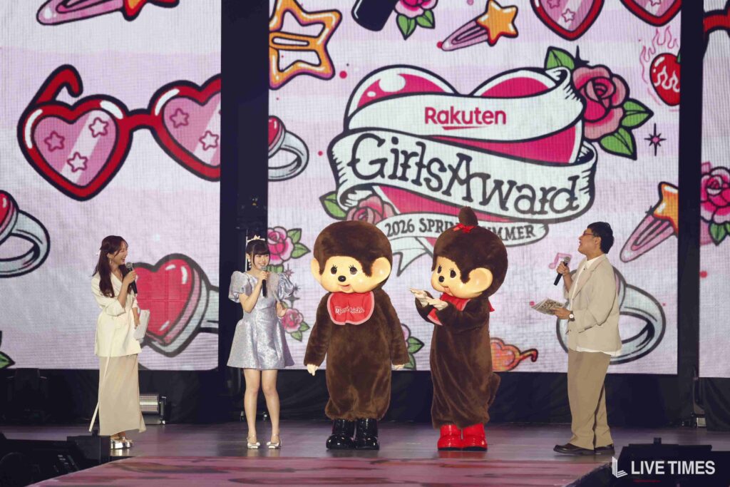 3人のMCによるトークの中では、2026年9月26日(土)に幕張メッセ1〜3ホールで開催される次回『Rakuten GirlsAward 2026 AUTUMN/WINTER』のキービジュアルと第1弾出演者も解禁。開催30回目を記念し、誕生50周年を迎えた人気キャラクター・モンチッチとのスペシャルコラボが実現した。