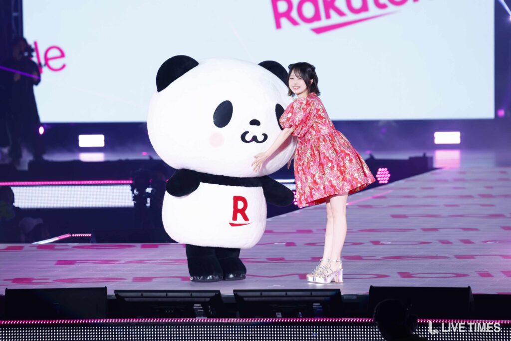 なえなのは、楽天モバイルSPECIAL STAGEにお買いものパンダとともに登場。ピンクの花柄があしらわれたパフスリーブのミニドレスに、シルバーの厚底サンダルを合わせ、すらりと伸びる美脚をあらわにした。