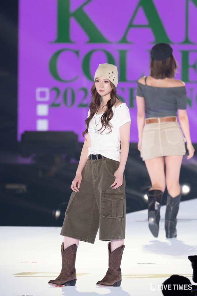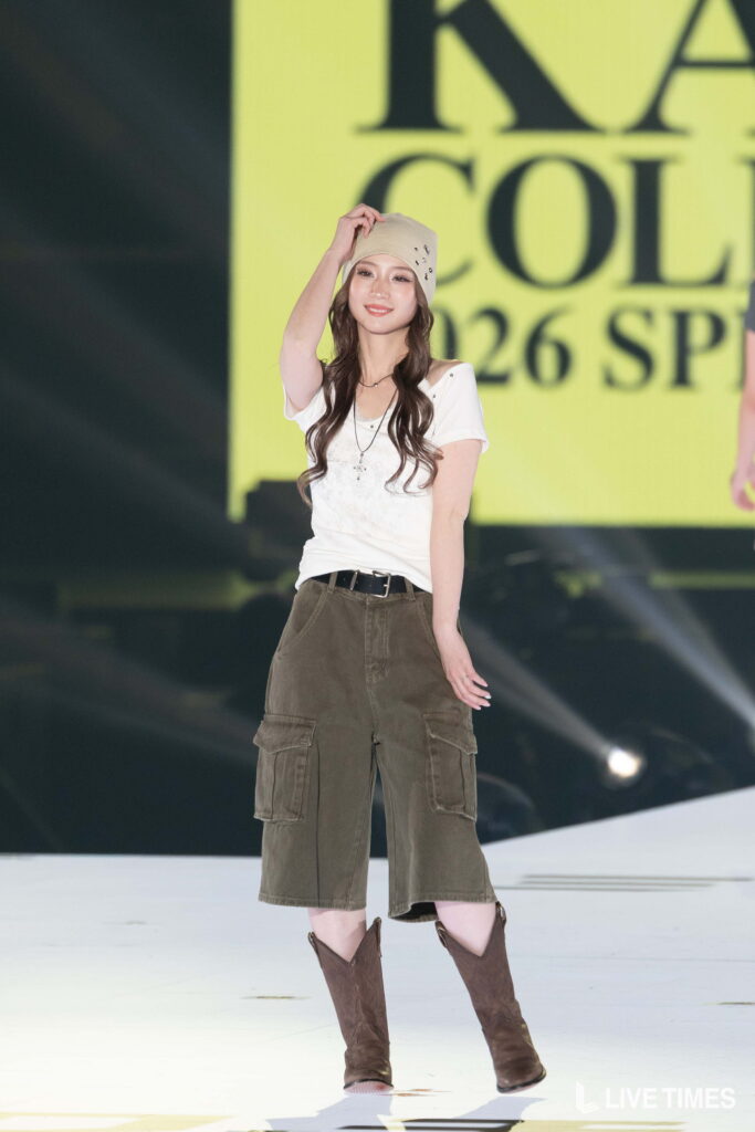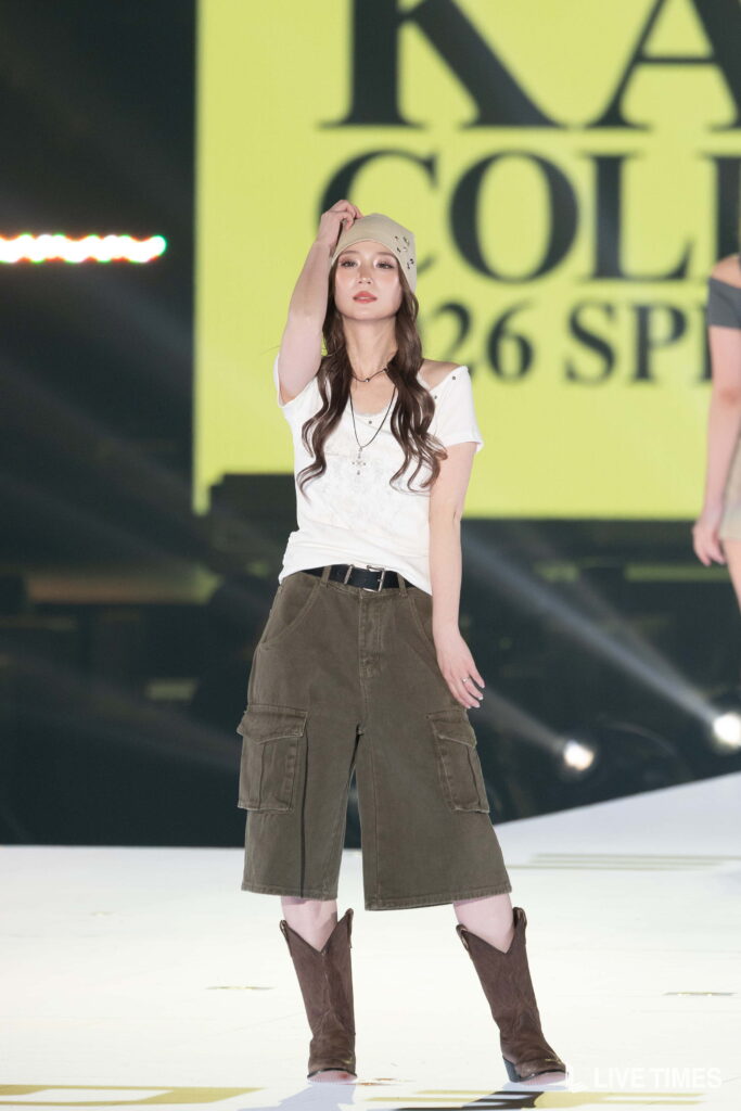 すずは、「ミクチャ」のSPECIAL STAGEに登場。ホワイトのレイヤードTシャツにカーキのカーゴハーフパンツ、ウエスタンブーツを合わせたSPINNSのストリートスタイルで姿を見せた。ランウェイのトップでは、クールな表情でポージングを決めたのち、最後にキュートな笑顔を見せ、ギャップのある魅力で観客を魅了した。