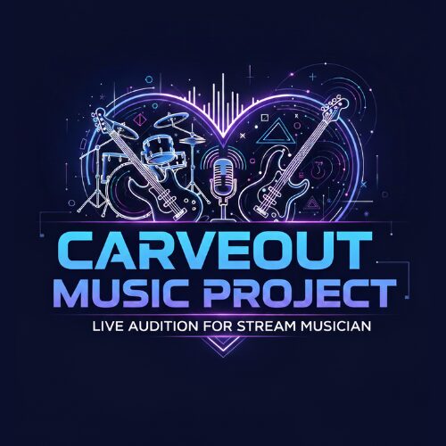CARVEOUT MUSIC PROJECTは、ライブ配信を起点に、楽曲制作・発信・認知拡大までを支援する音楽プロジェクト。