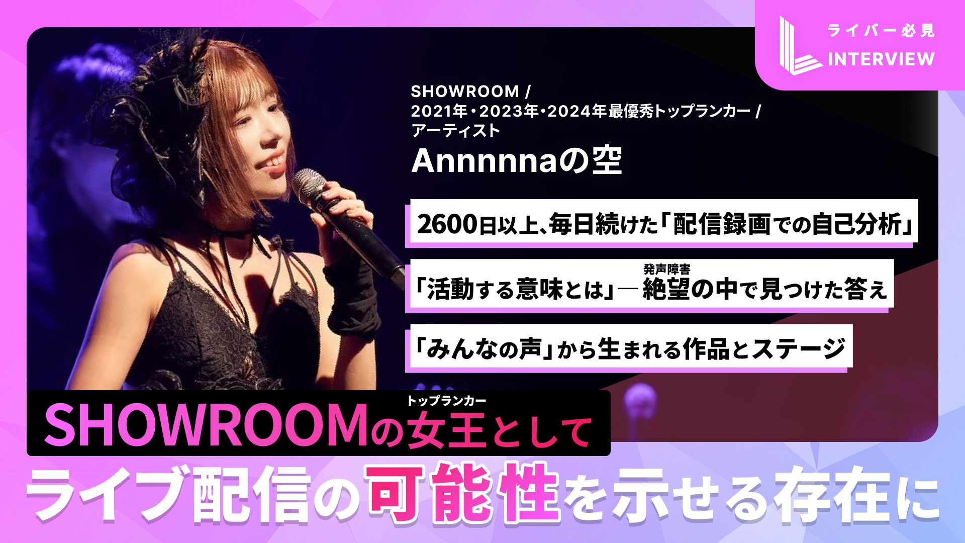 9年、2600日以上、一日も休まない配信──。その圧倒的な継続力で「SHOWROOMの頂点」の座に君臨するアーティスト、Annnnnaの空。