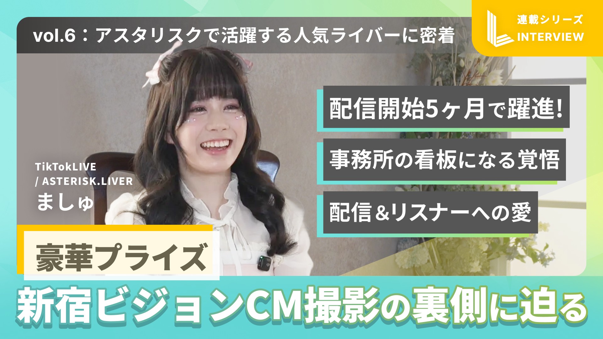 「新宿ユニカビジョンCM撮影権獲得」。デビューからわずか数ヶ月で事務所の看板となる功績を掴んだのは、ライバー「ましゅ」だ。